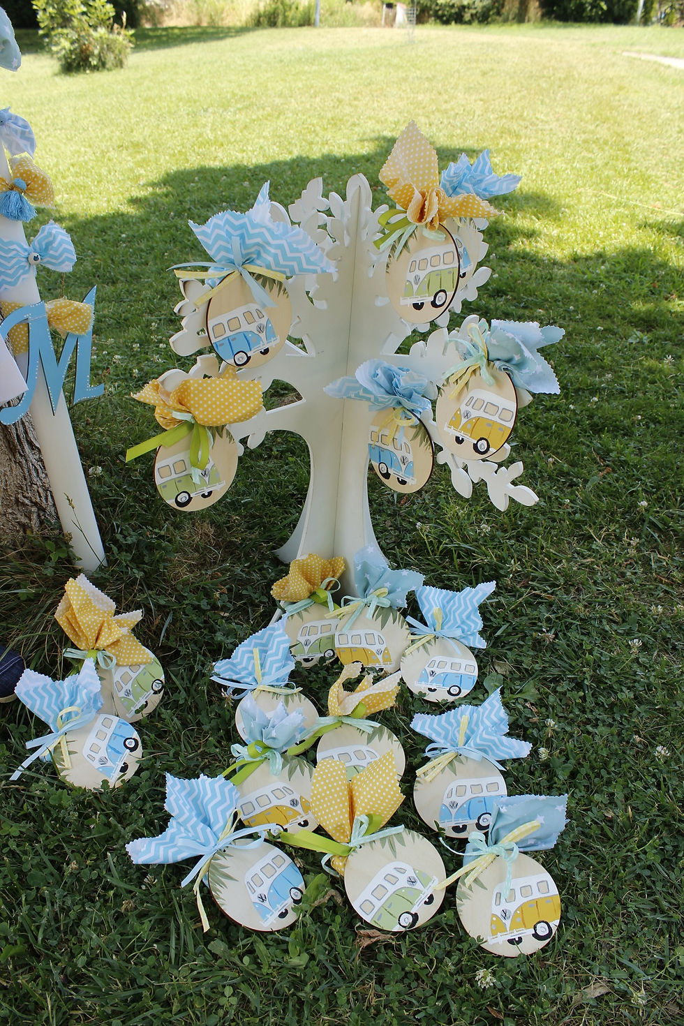 Μπομπονιέρες βάπτισης στρογγυλές και ξύλινες