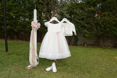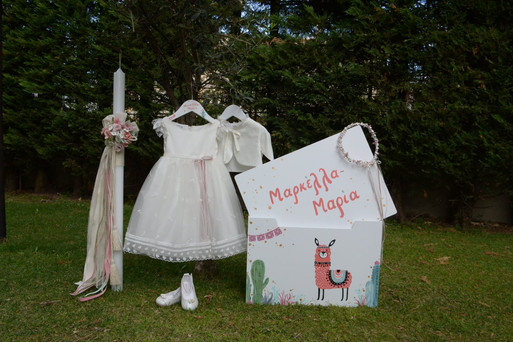 Ολοκληρωμένη βάπτιση για την μικρή Μαρκέλα - Μαρία με θέμα το λάμα. Χαριτωμένο φορεματάκι σε λευκό χρώμα με ροζ ζώνη και κεντημένες πεταλούδες που συνδυάστηκε με κομψό μπολερό με αντίστοιχα τελειώματα. Συμπληρώθηκε με ζωγραφιστό κουτί και λαμπάδα βάπτισης με χειροποίητα 3d λουλούδια. Τέλεια συνδυασμένα με λαδόπανα με κεντημένο μονόγραμμα, τις μπαλαρίνες, το λαδοσέτ και το στεφανάκι για τα μαλλιά! Όλα χειροποίητα στους τόνους του ροζ του σομόν και του λευκού, διακοσμημένα με λουλούδια και κορδέλες