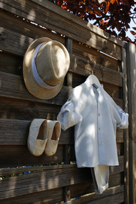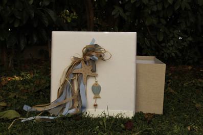 Ολοκληρωμένη βάπτιση για τον μικρό Ανδριανό με θέμα αστερίες και ψαράκια. Χειροποίητα βαπτιστικά ρούχα που αποτελούνται από λινό παλ σιελ πουκάμισο , λινό παντελόνι στο χρώμα της άμμου, μπεζ εσπαντρίγες και ψαθάκι. Τέλεια συνδυασμένα με λαμπάδα βάπτισης διακοσμημένη με χειροποίητα ξύλινα ψαράκια και αστερίες και αντίστοιχο υφασμάτινο κουτί βάπτισης. Συμπληρωμένα με λαδόπανα, λαδοσετ και μαρτυρικά στο ίδιο ύφος. Όλα χειροποίητα στο χρώμα της άμμου, του γαλάζιου και του γκρί διακοσμημένα με κορδέλες και τρέσες.